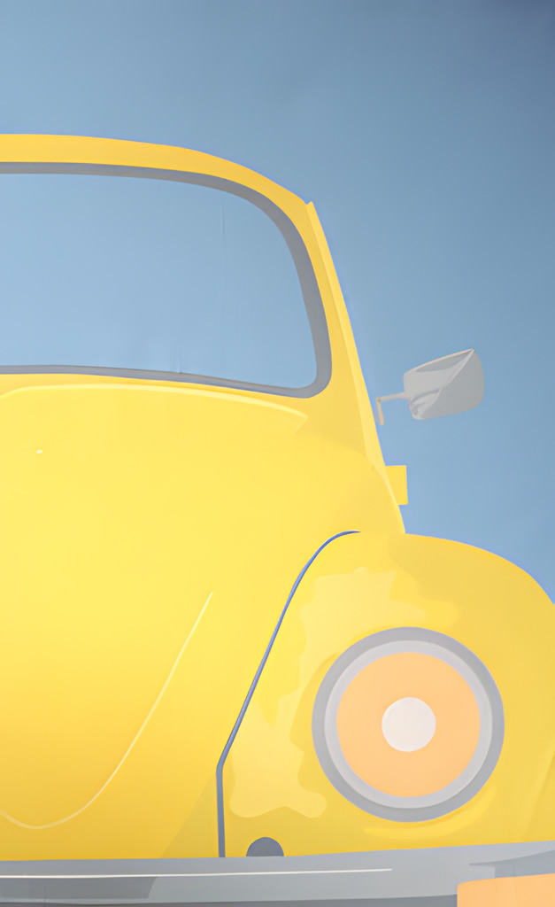 Study and explosion of colour in the first solo exhibition, where the curves and pop icons of the popular beetles are enhanced to their maximum chromatic potential.